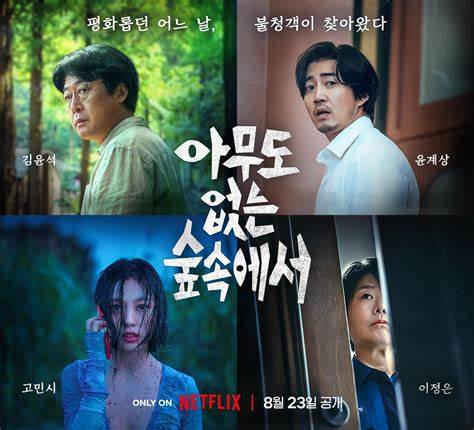 2024년 8월 넷플릭스에서 공개된 [아무도 없는 숲 속에서]는] 한여름 찾아온 수상한 손님으로 인해, 평온한 일상이 무너지고 걷잡을 수 없는 사건에 휘말리게 되는 사람들의 이야기를 그린 서스펜스 스릴러입니다. [아무도 없는 숲 속에서]는] 자연의 고요함 속에 숨겨진 두려움과 이를 마주한 인물들의 이야기를 통해 관객들을 몰입시킵니다. 이 글에서는 영화의 줄거리, 출연진의 연기력, 그리고 주목해야 할 관전 포인트를 집중적으로 살펴보겠습니다.